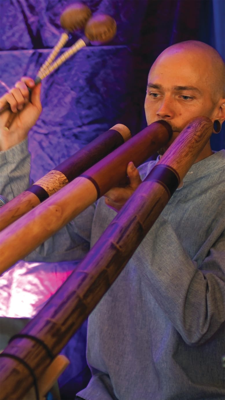 • Experience the power of instruments that resonate with earth, such as drums and the didgeridoo.